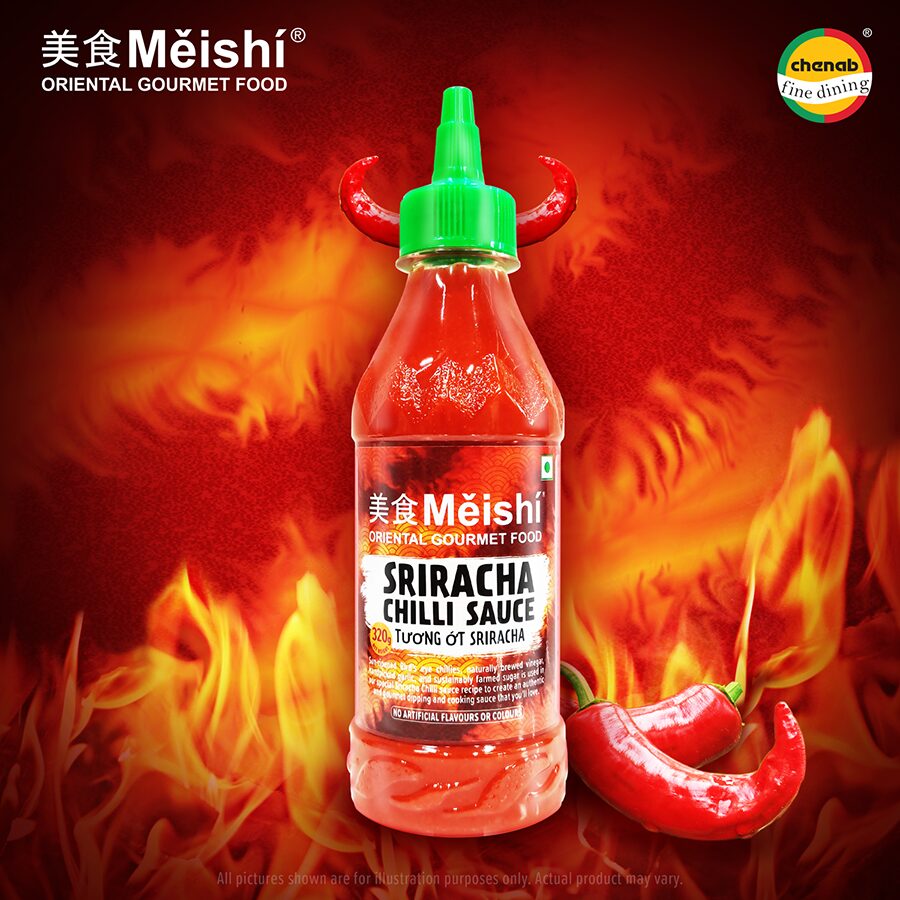 1. Heat 5 tablespoons of sesame oil in a pan. 2. Deep fry minced garlic,finely chopped red onions and ginger paste together. 3. In a large bowl create a marinade with Meishi Sriracha Sauce, Soy Sauce, Honey, and Tomato Sauce. Marinade the chicken in it. Let it rest for 20 minutes. 4. Add the marinated chicken to the pan with the onion, ginger and garlic mixture. Cook until tender. 5. Serve hot as a starter or with white rice.