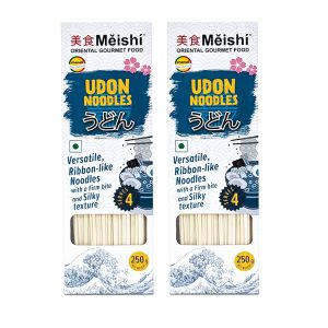 With Meishi, Chenab takes you on a journey through the Orient by bringing for you authentic ingredients from Thailand, Vietnam, Japan, Indonesia, Malaysia. With varieties of Noodles, rice paper sheets, vermicelli, Meishi has launched some quick cooking, dried noodles – Soba, Udon and Ramen. Noodles are a staple of Japanese cuisine. The popular Japanese noodles are Soba (Whole Wheat and Buck Wheat), Udon (Refined wheat) and Egg Ramen (Refined wheat, Eggs).They are often served chilled with dipping sauces, or in soups or hot dishes. Meishi Udon noodles are made out of refined wheat flour, they are thick and white in color, best as fresh, they are versatile ribbon like noodles with a firm bite and silky texture. Due to their neutral flavor, they are able to absorb strong-flavored ingredients and dishes. They are specially used in Japanese cuisine. It is a comfort food for many Japanese people. There are a variety of ways it is prepared and served. It is usually topped with thinly chopped scallions. More unusual variants include stir-fried yaki udon and curry udon made with Japanese curry. It is often used in Japanese hot pot. Udon noodles are boiled in a pot of hot water. Depending on the type of udon, the way it is served is different as well. Udon noodles are usually served chilled in the summer and hot in the winter. Due to the mild taste, udon noodles are great to use with strong flavors and ingredients. Meishi Udon noodles are typically served as a noodle soup in a hot broth, but they can also be served cold, with a dipping sauce. Some of the more popular udon dishes are Kake udon, Curry udon, Yaki udon.