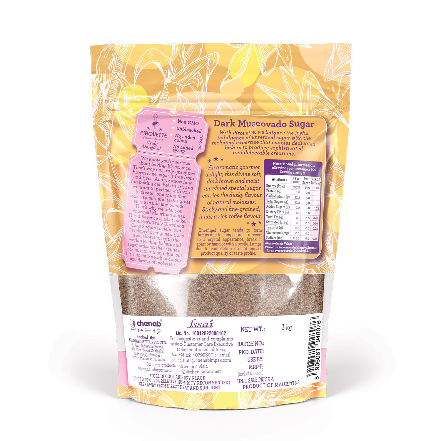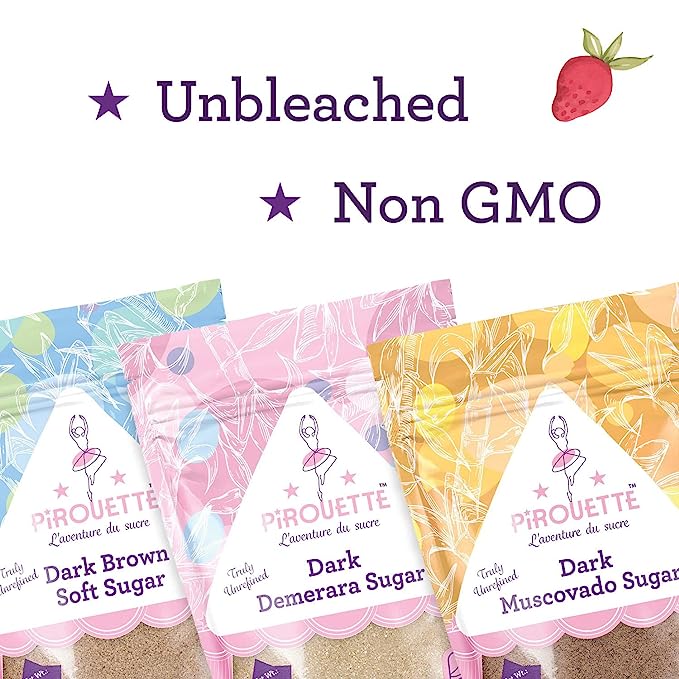 Pirouette Dark Muscovado Sugar is unbleached sugar with no added colour, no added syrup and Non GMO.