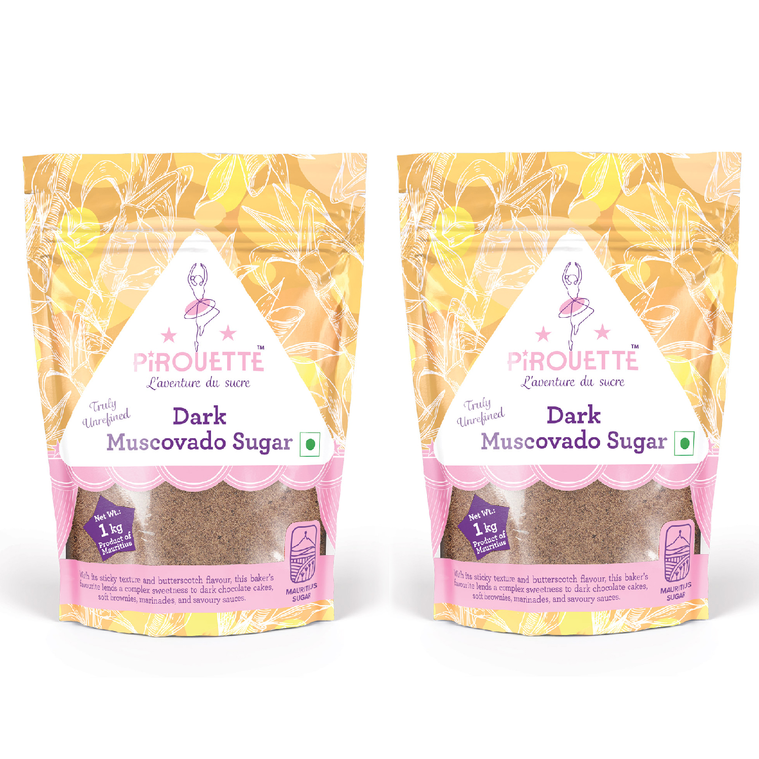 Pirouette Dark Muscovado Sugar has a fine, moist texture, its an aromatic delight. This divine soft dark brown and moist unrefined special sugar carries the dusky flavour of natural molasses. Due to its rich toffee flavour it goes beautifully with gingerbread, coffee, chocolate cakes, fudge as well as in the preparation of savoury dishes and sweet and sour sauces.