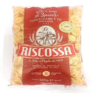 Riscossa has been in the business for over a hundred years and is one of the most respected names in the food industry in Italy. The Sunshine of Puglia since 1902 has witnessed the harvesting of the finest durum wheat for our pasta. Riscossa delivers directly to your home the aromas and flavors of the Mediterranean tradition. Wholesome ingredients and a traditional processing method: the basis of the unmistakable taste of Riscossa. We have over one hundred years of experience, yet the passion for our work has remained the same. We always select only the best raw materials, to bring to your table the great tradition of Italian pasta. We are pleased today to offer new pasta shape of orecchiette grandi Pasta – 100% Italian Wheat. The true quality of pasta can be tested by cooking smooth pasta shapes! The orecchiette grandi are made from durum wheat and water. The orecchiette owes its name to its shape, because it means ears that is a concave shell to be made with the thumb or with the tip of a knife without blade. This special shape makes orecchiette suitable for most pasta recipes this makes the pasta also suitable for a vegetarian or vegan diet. The orecchiette cook easily and do not stick together. Due to the good quality of the pasta, the pasta sauce adheres well to the pasta and your pasta recipe will be even tastier!